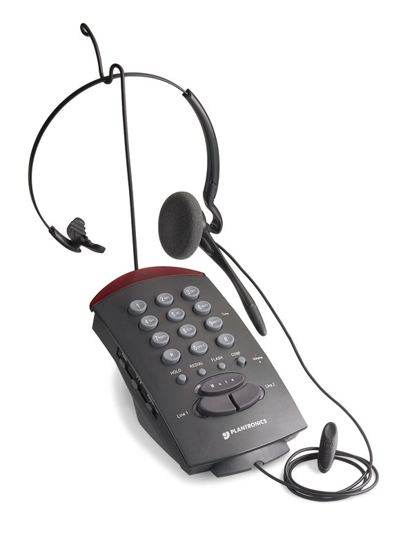 PLANTRONICS T20 cintillo telefónico con teléfono para 2 líneas, incluyendo una botonera mullida, teclas flash, mute y redial, además de la facilidad de control de volumen y el interruptor de tono/pulso. Consulte por otros cintillos telefónicos.